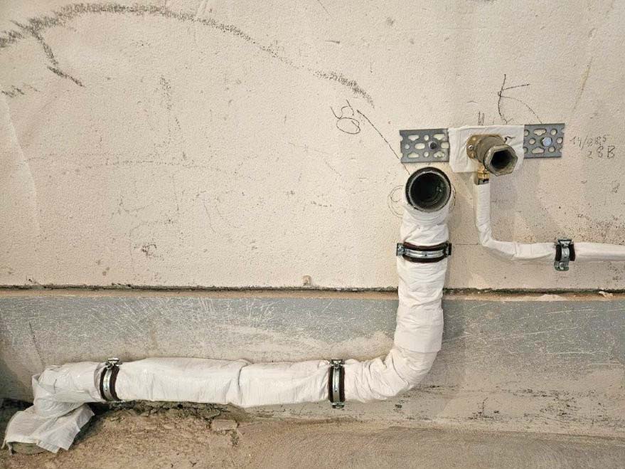 Nachträgliches Dämmen von Leitungen mit Schutzschläuchen als Klettvariante für Kaltwasser- und Abwasserleitungen, Warmwasserleitungen, Solar- und Wärmepumpenleitungen